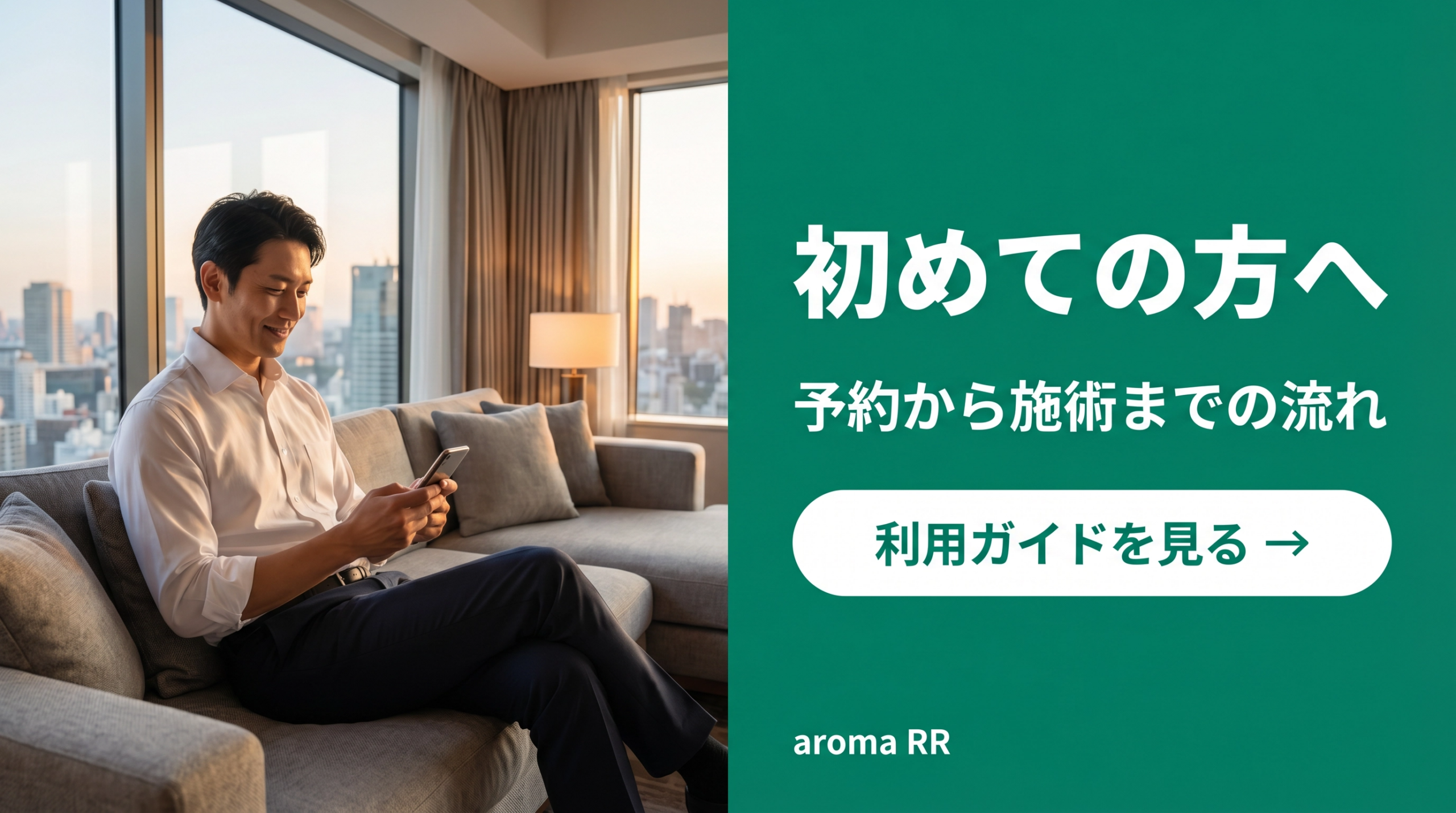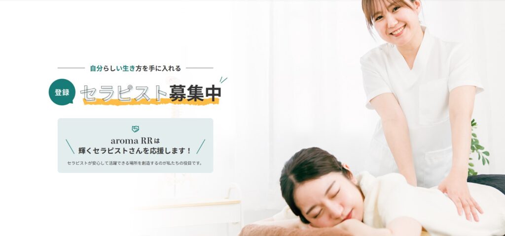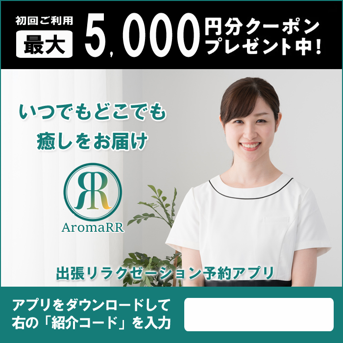 AromaRRはリラクゼーションを求めるユーザーとセラピストを直接繋ぐことができるマッチング型予約アプリです。ご自宅や出張先のホテルなどにセラピストを呼ぶことができます。