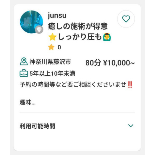 アプリはリラクゼーションサービスのマッチングを目的としておりますので、回春や風俗サービスは禁止となります。
