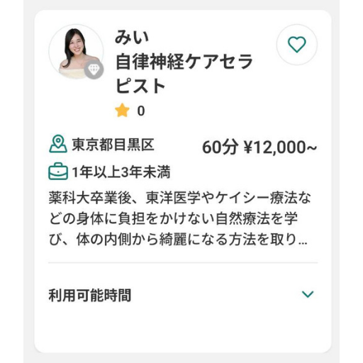 詳細は各セラピストのプロフィールをご確認ください。